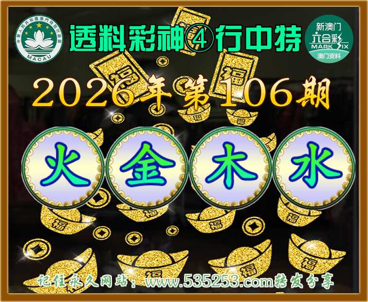 106期:〖透料彩神〗 🏅④行中特🏅【火.金.木.】开:水22