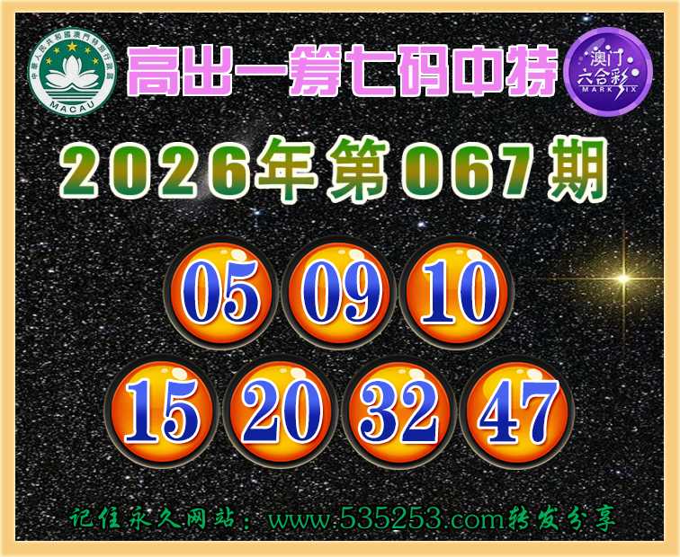 067期:【高出一筹】 🥖七码中特🥖【05.09.10.15.20.32.47】开:05